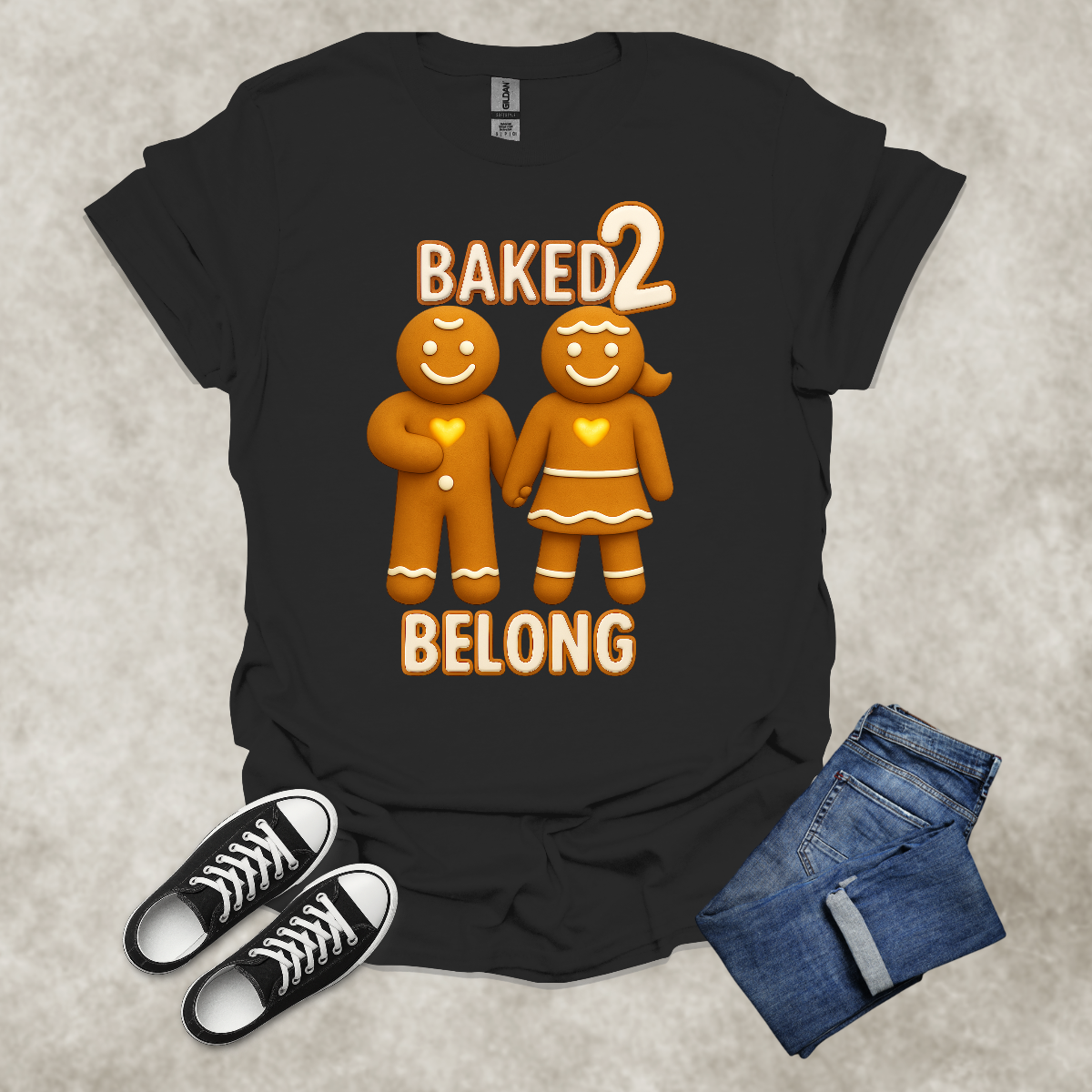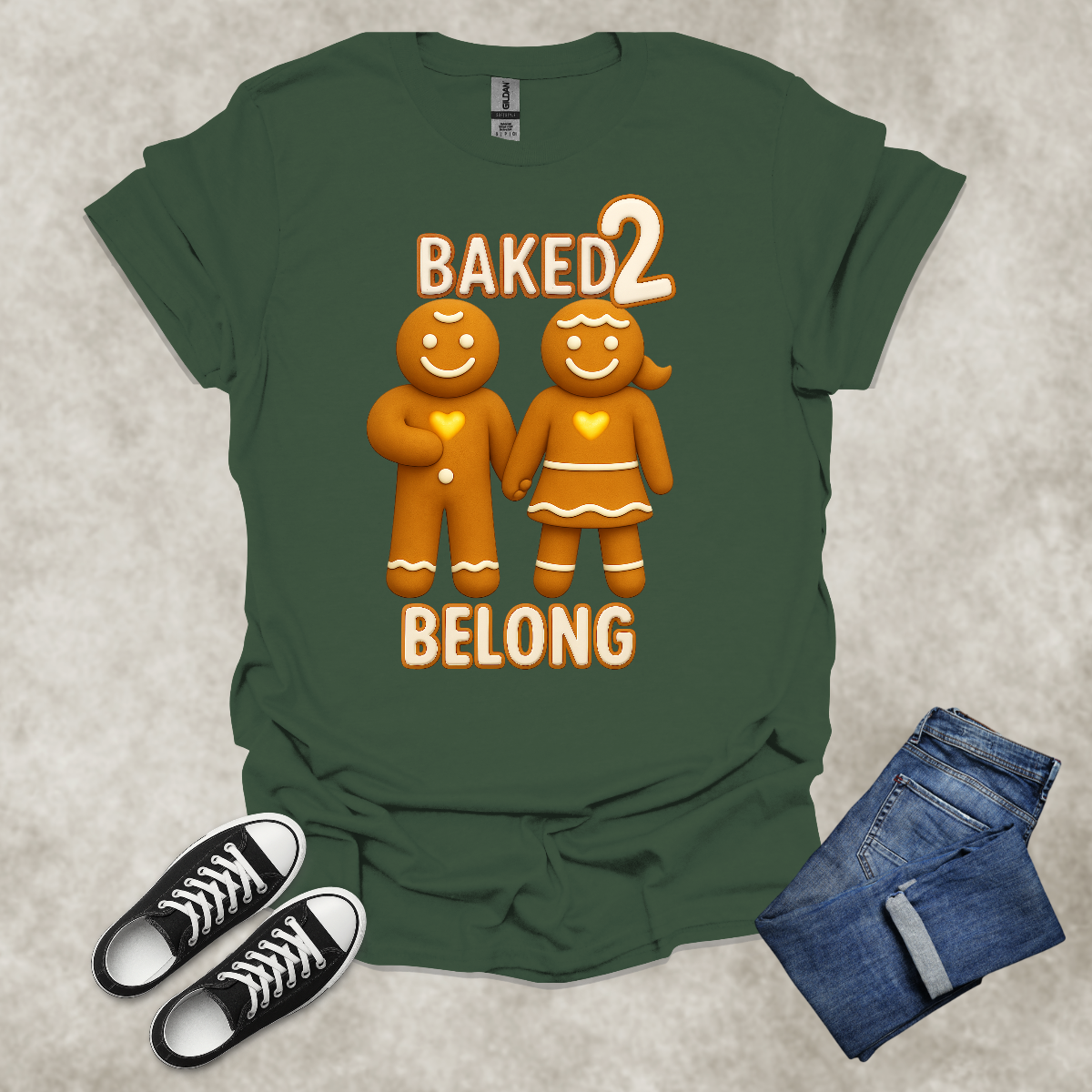 BAKED 2 BELONG — Gingerbread Love Graphic Tee: Unisex Softstyle T-Shirt