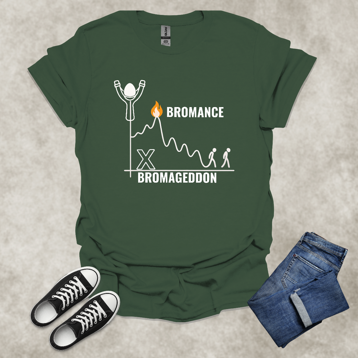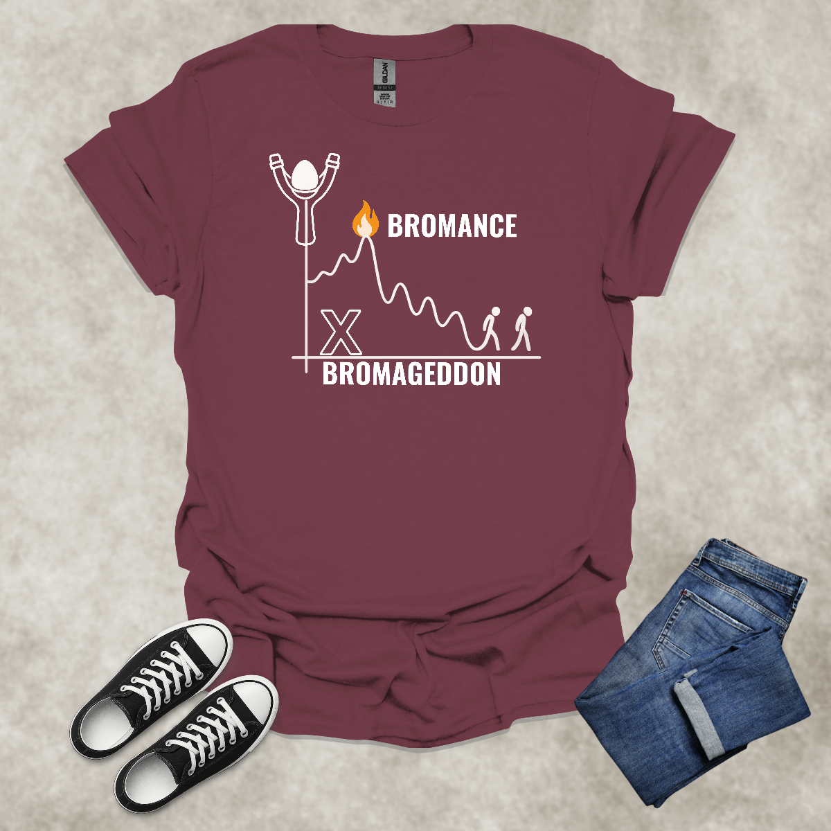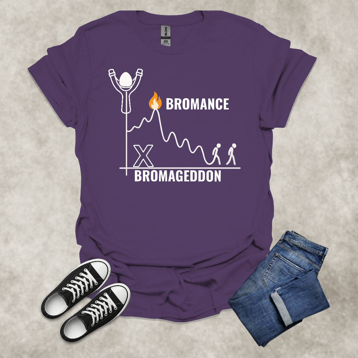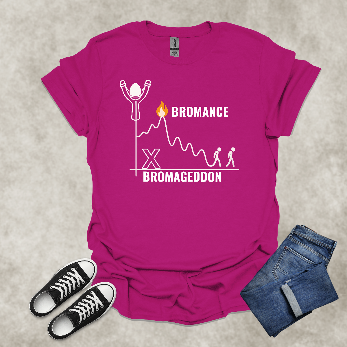 BROMANCE: BROMAGEDDON — Relationship Satire Tee: Unisex Softstyle T-Shirt