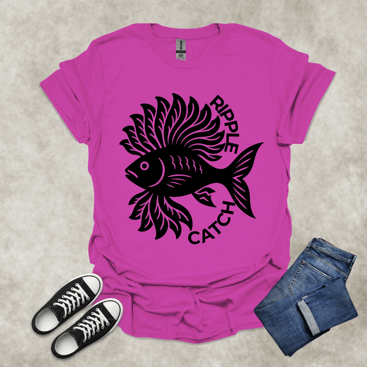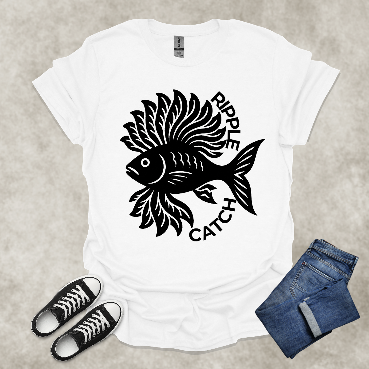 RIPPLE CATCH — Surreal Aquatic Art Tee: Unisex Softstyle T-Shirt