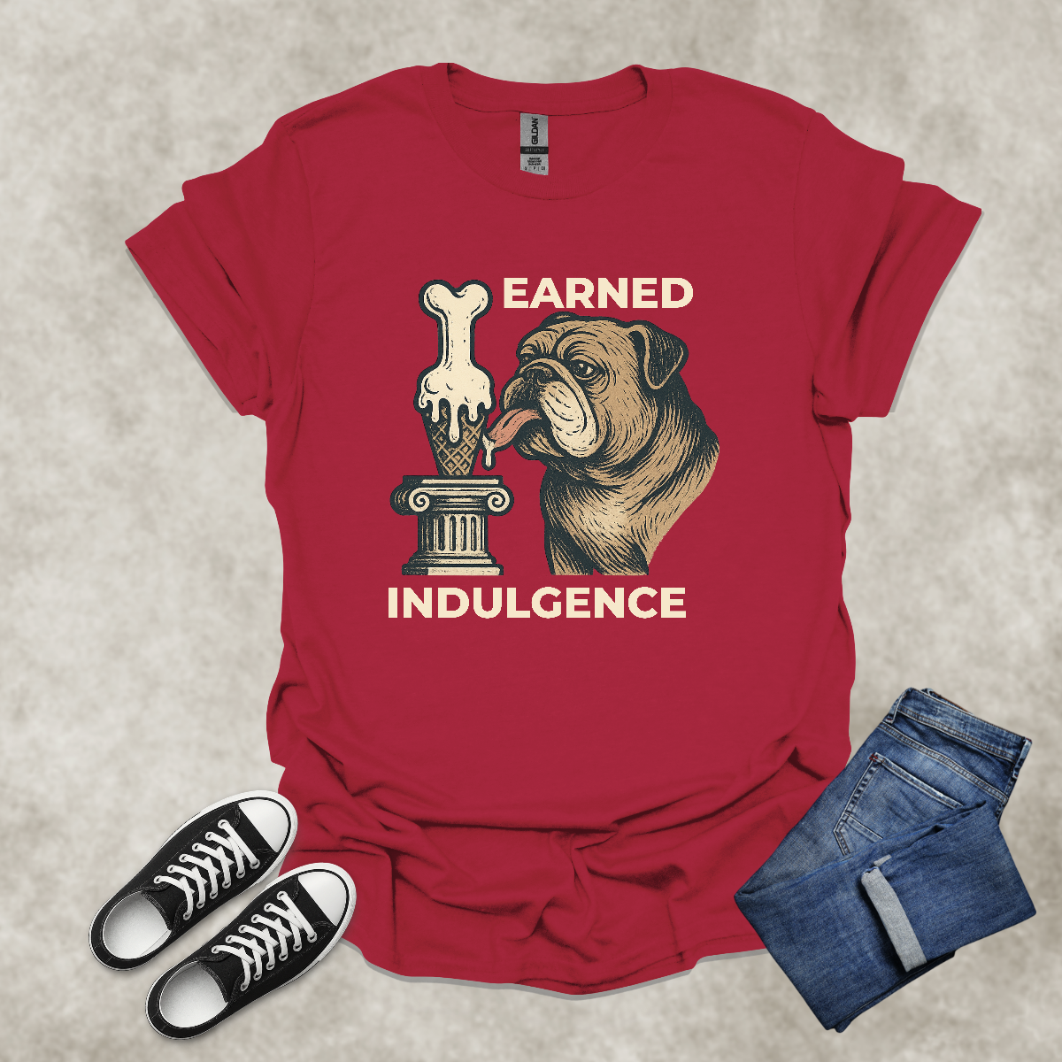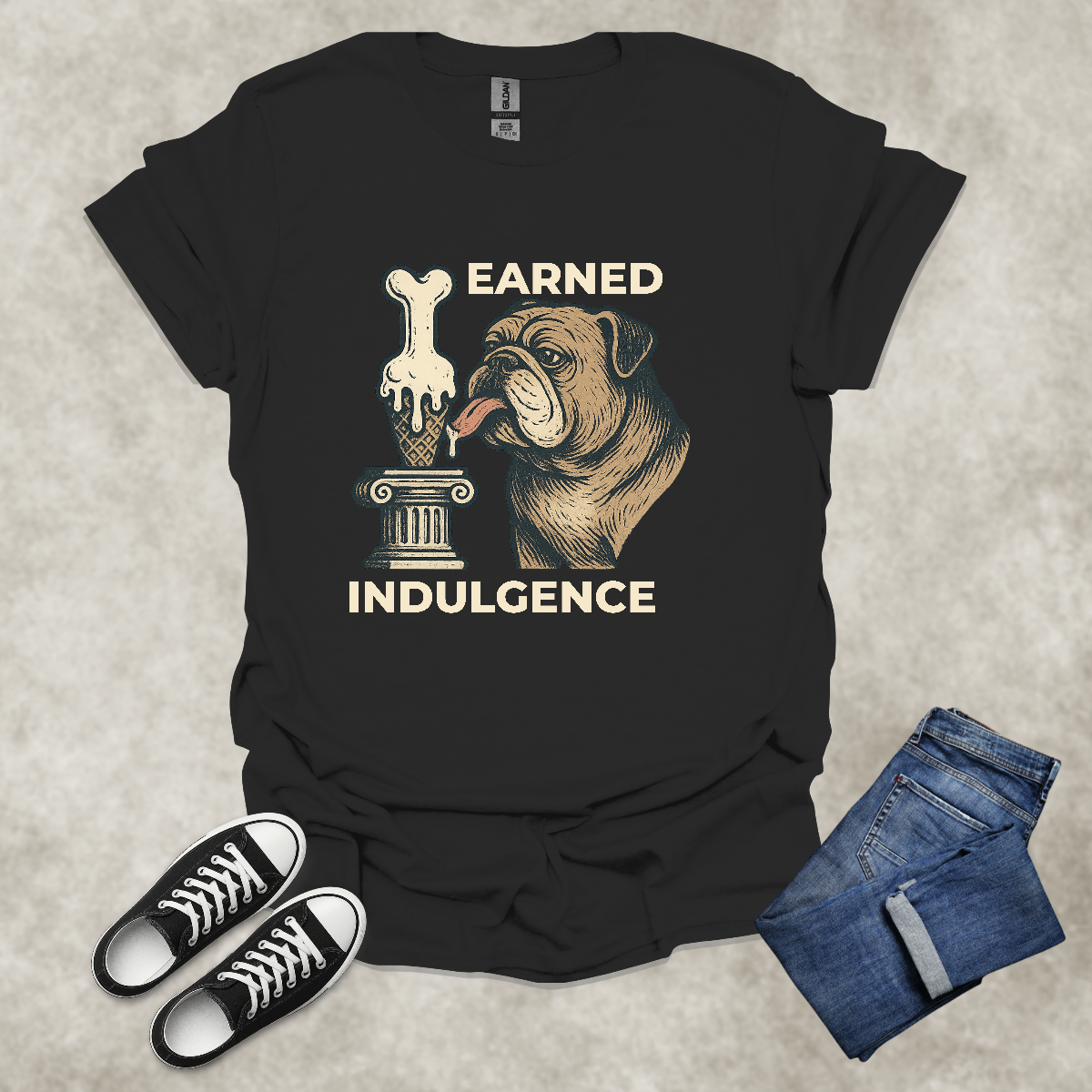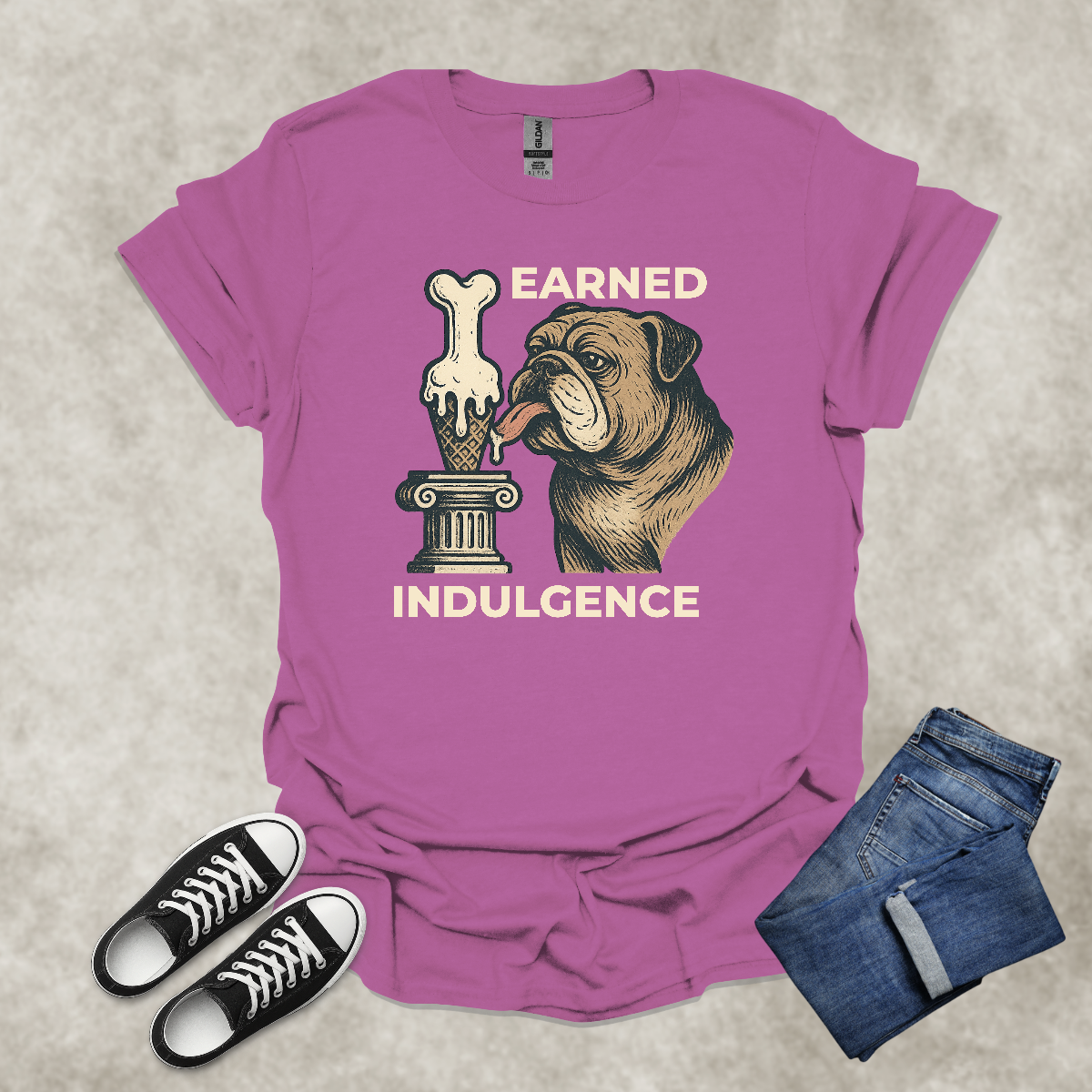 EARNED INDULGENCE — Bulldog Humor Graphic Tee: Unisex Softstyle T-Shirt