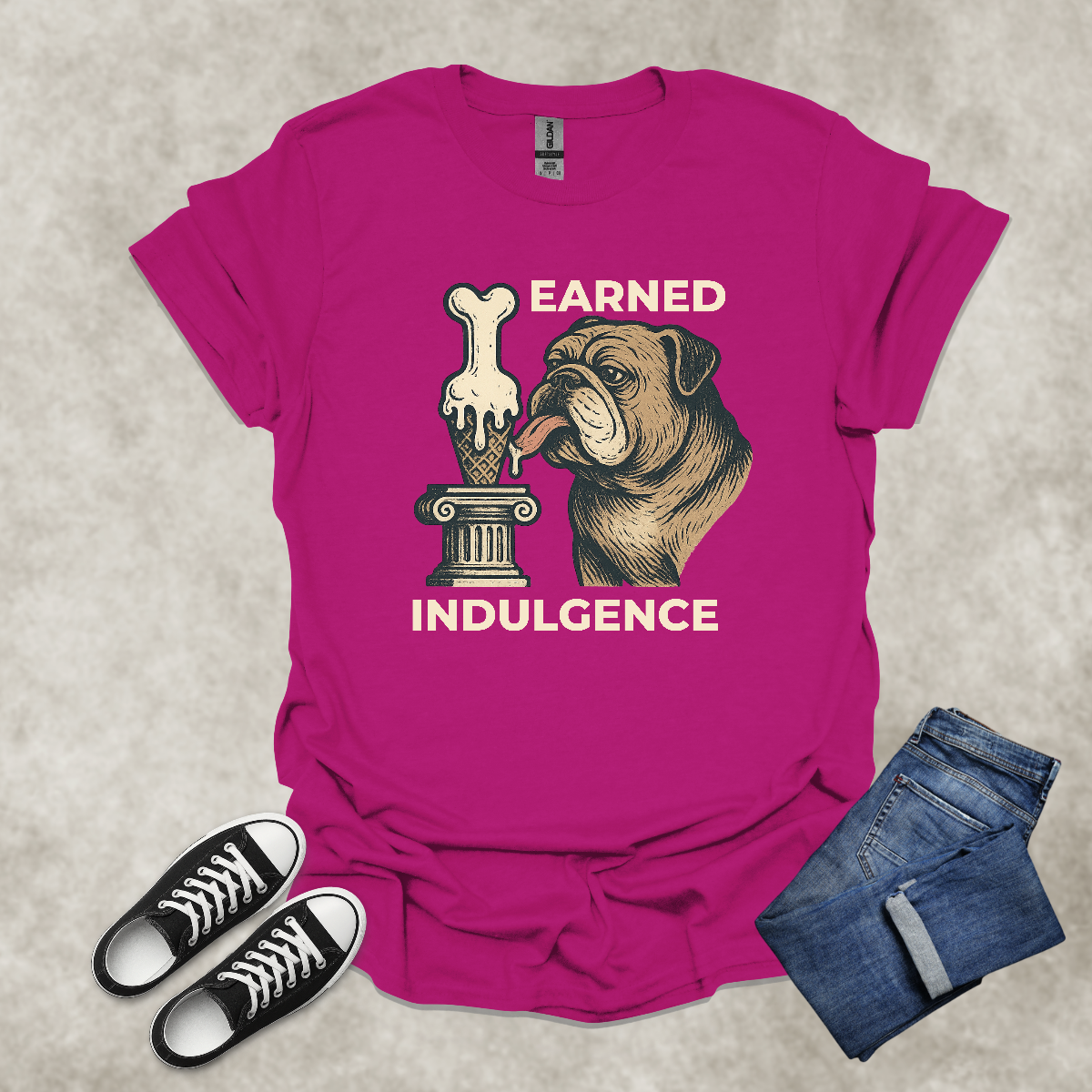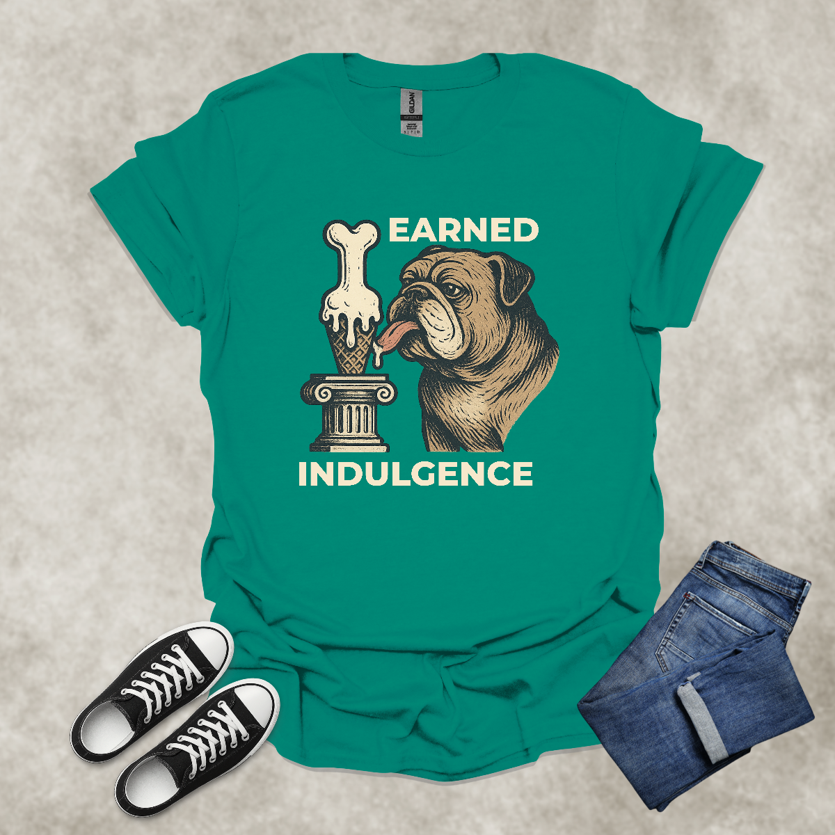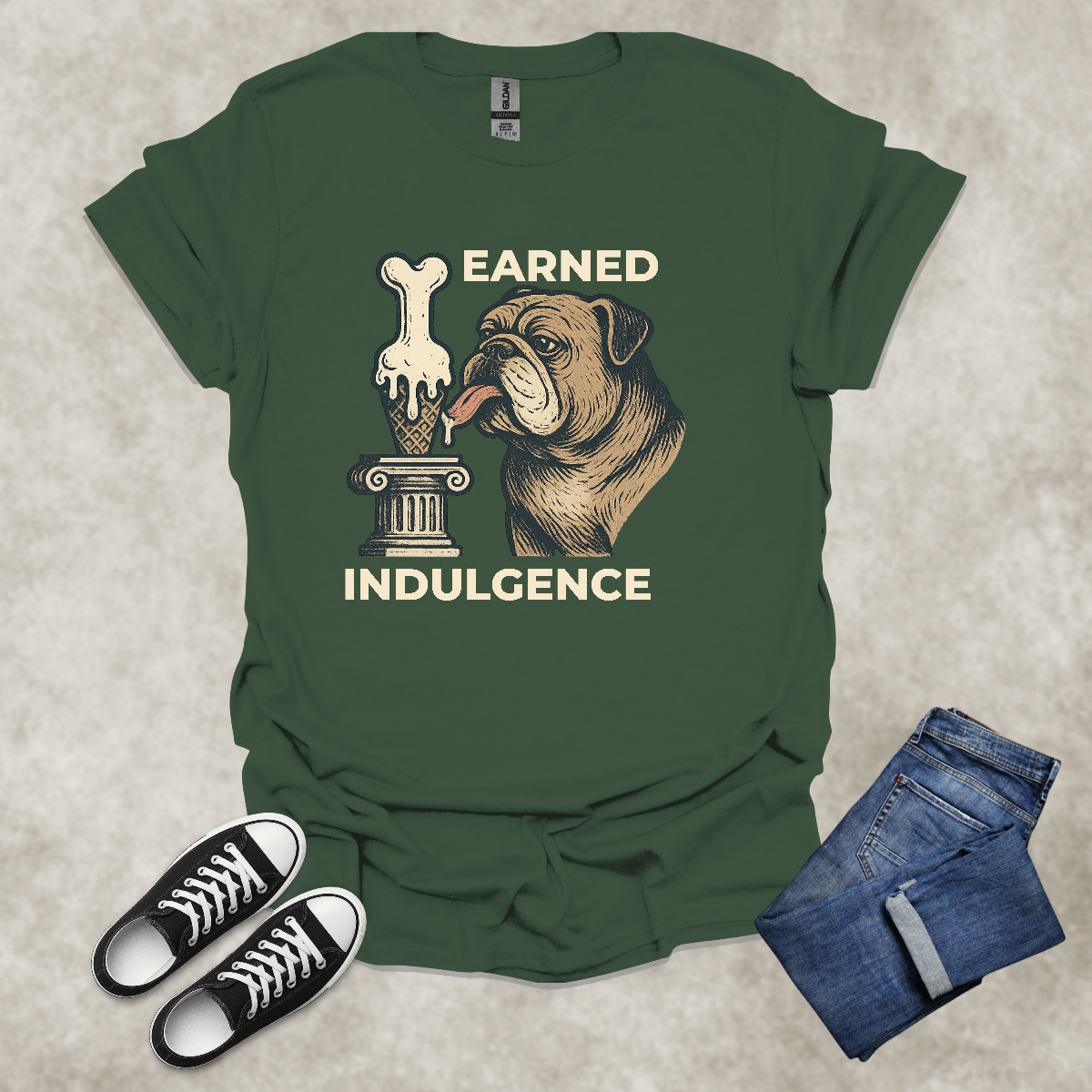 EARNED INDULGENCE — Bulldog Humor Graphic Tee: Unisex Softstyle T-Shirt