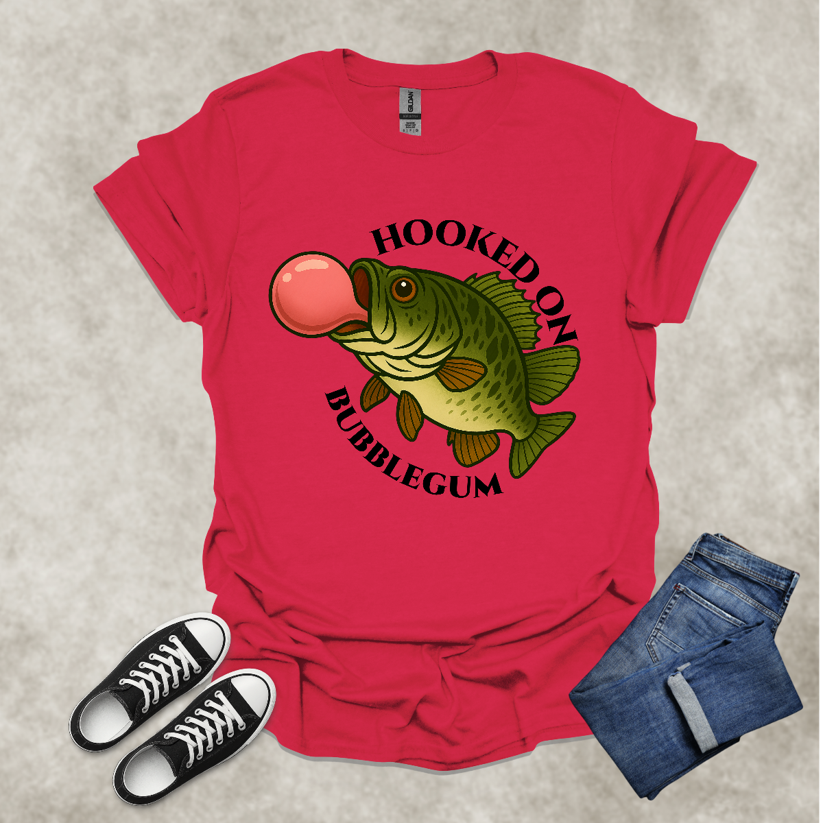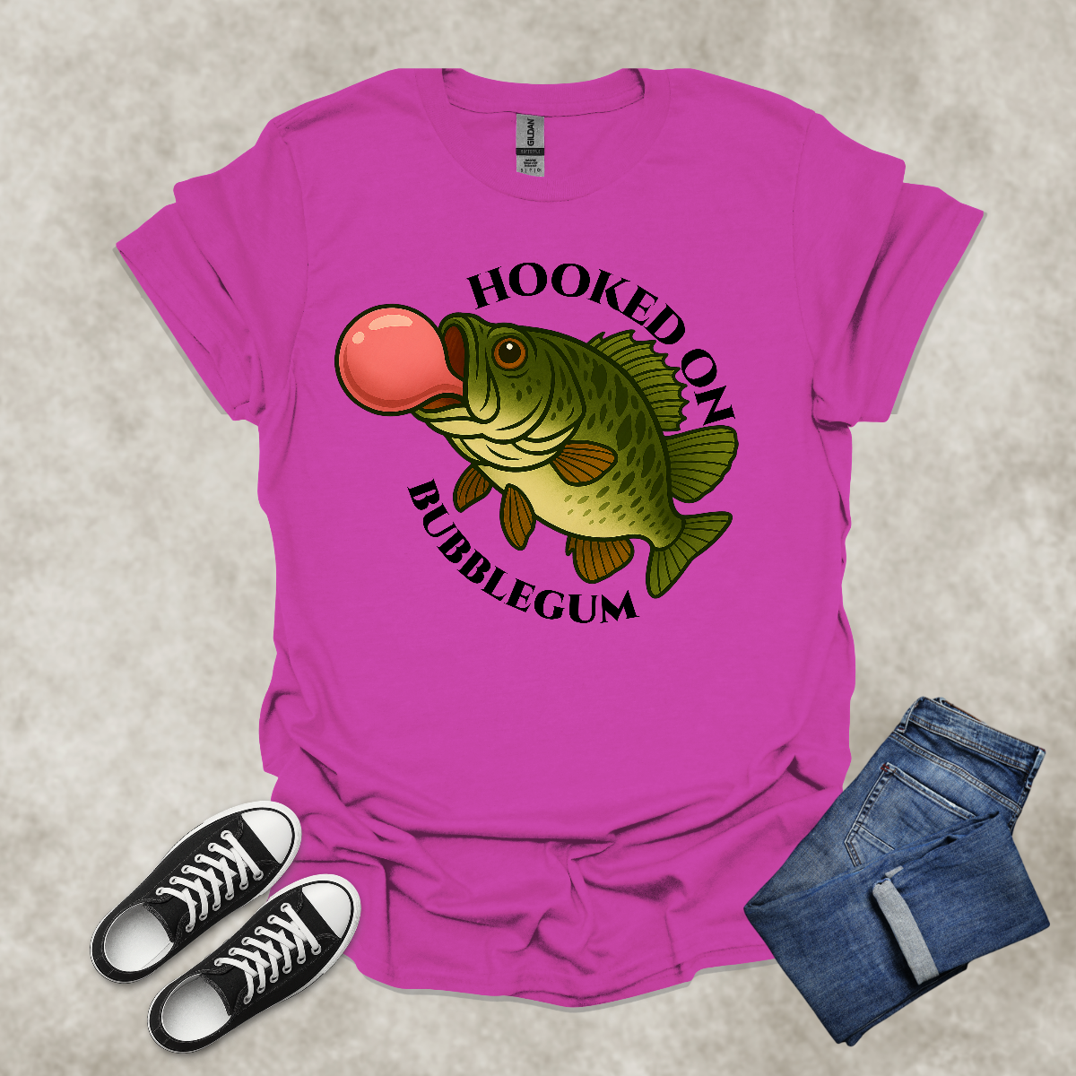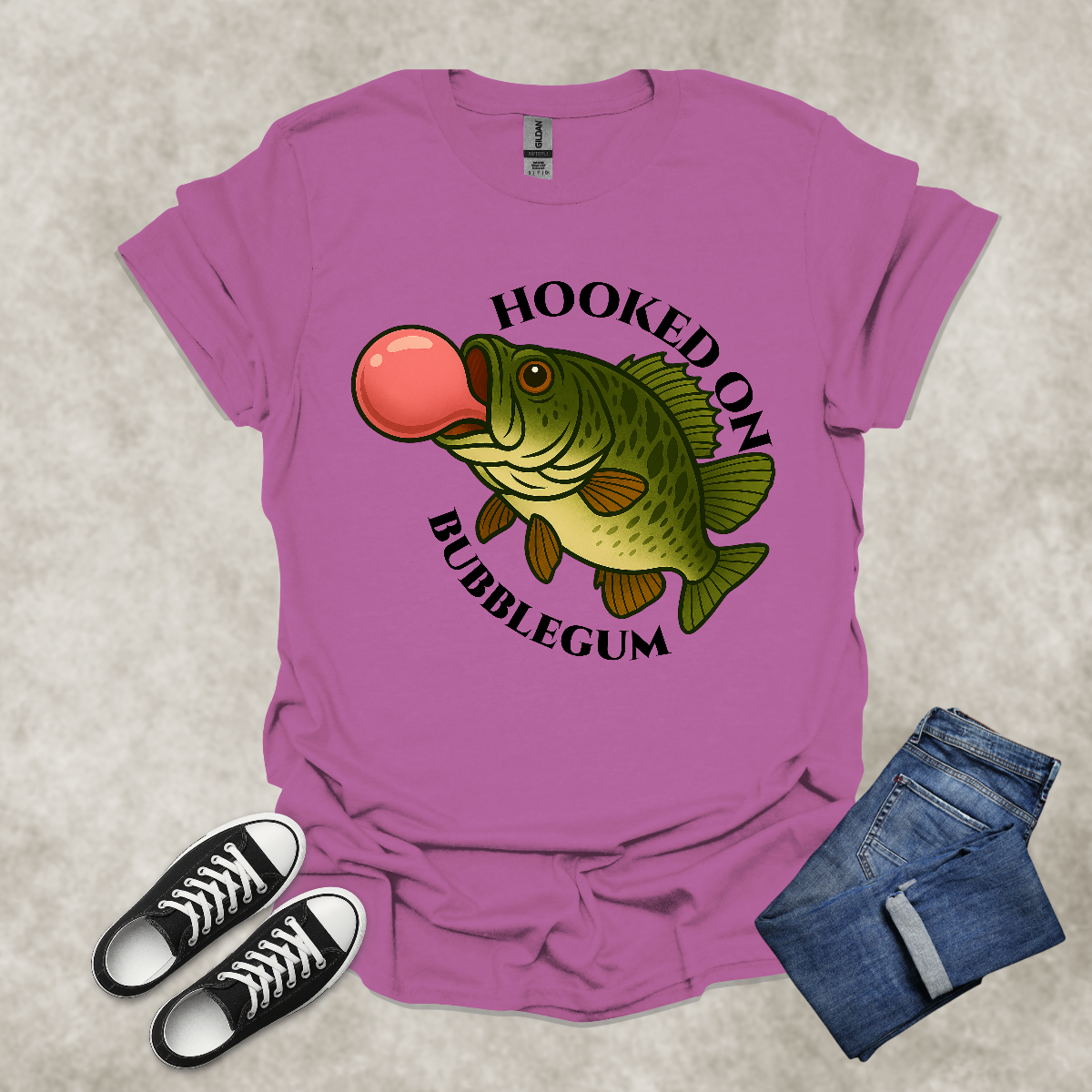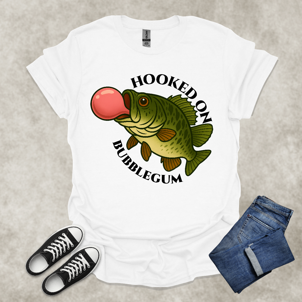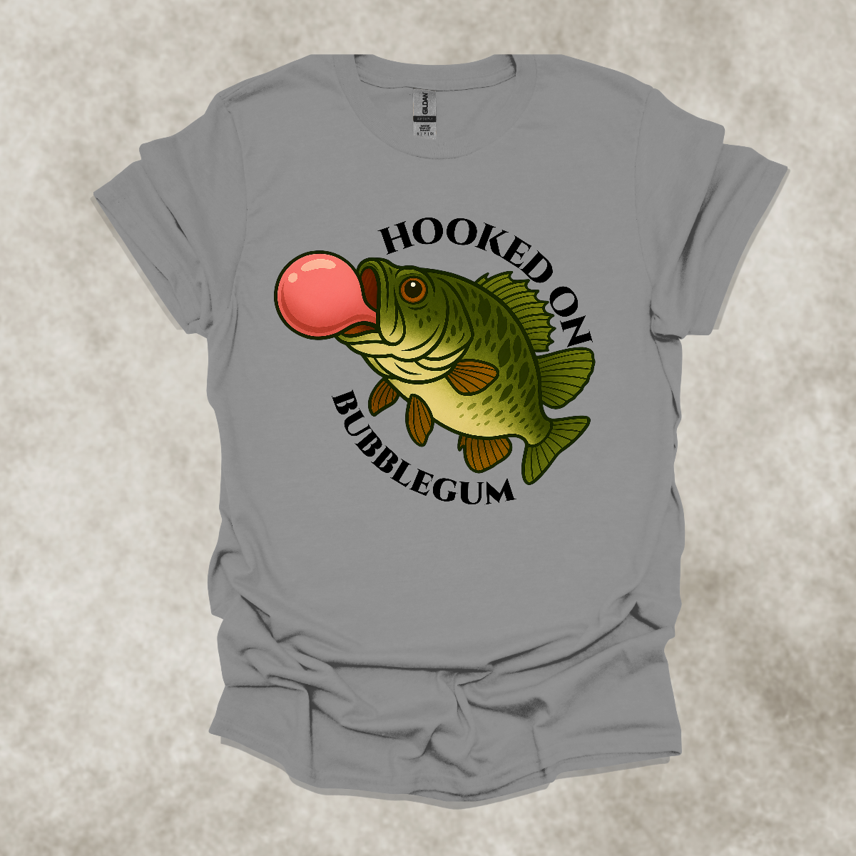 HOOKED ON BUBBLEGUM — Fishing Humor Graphic Tee: Unisex Softstyle T-Shirt