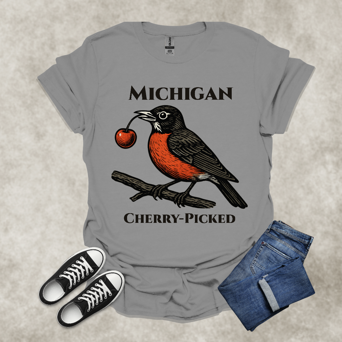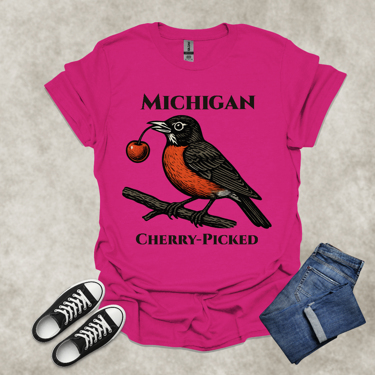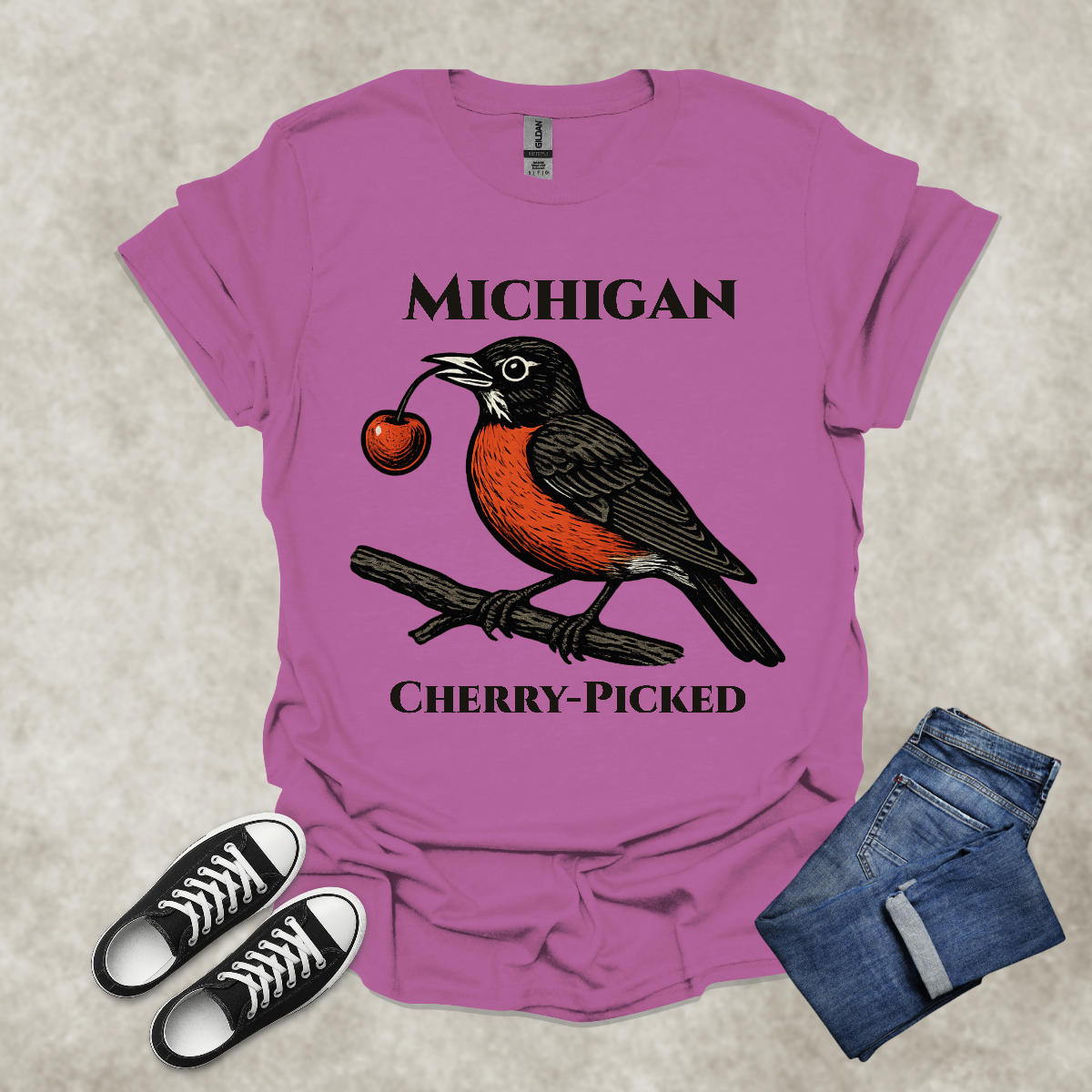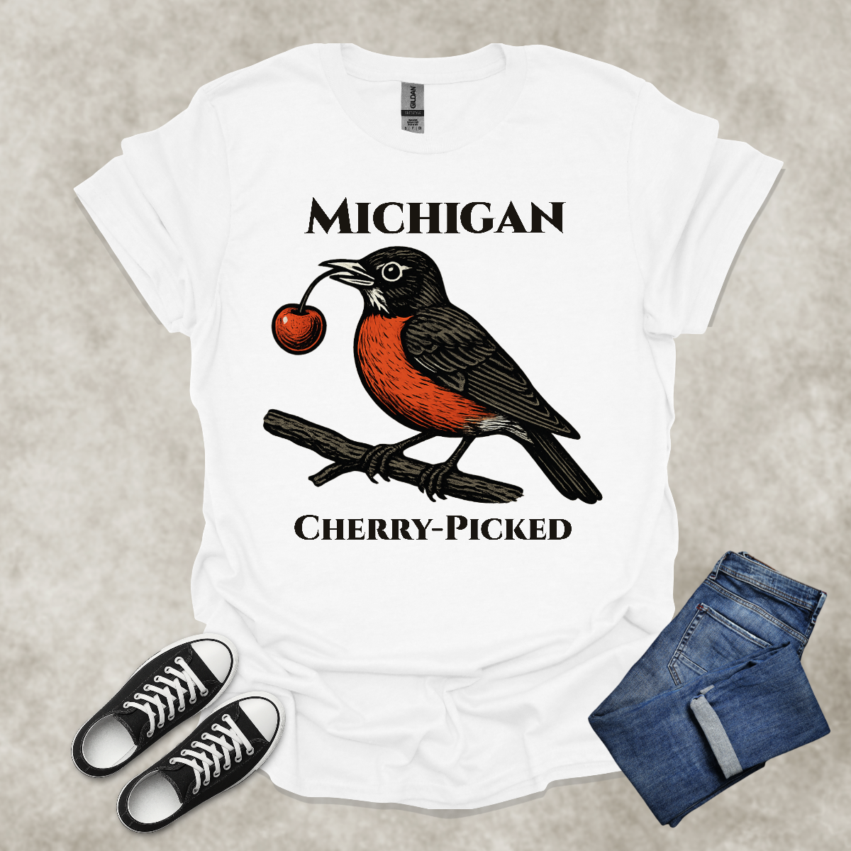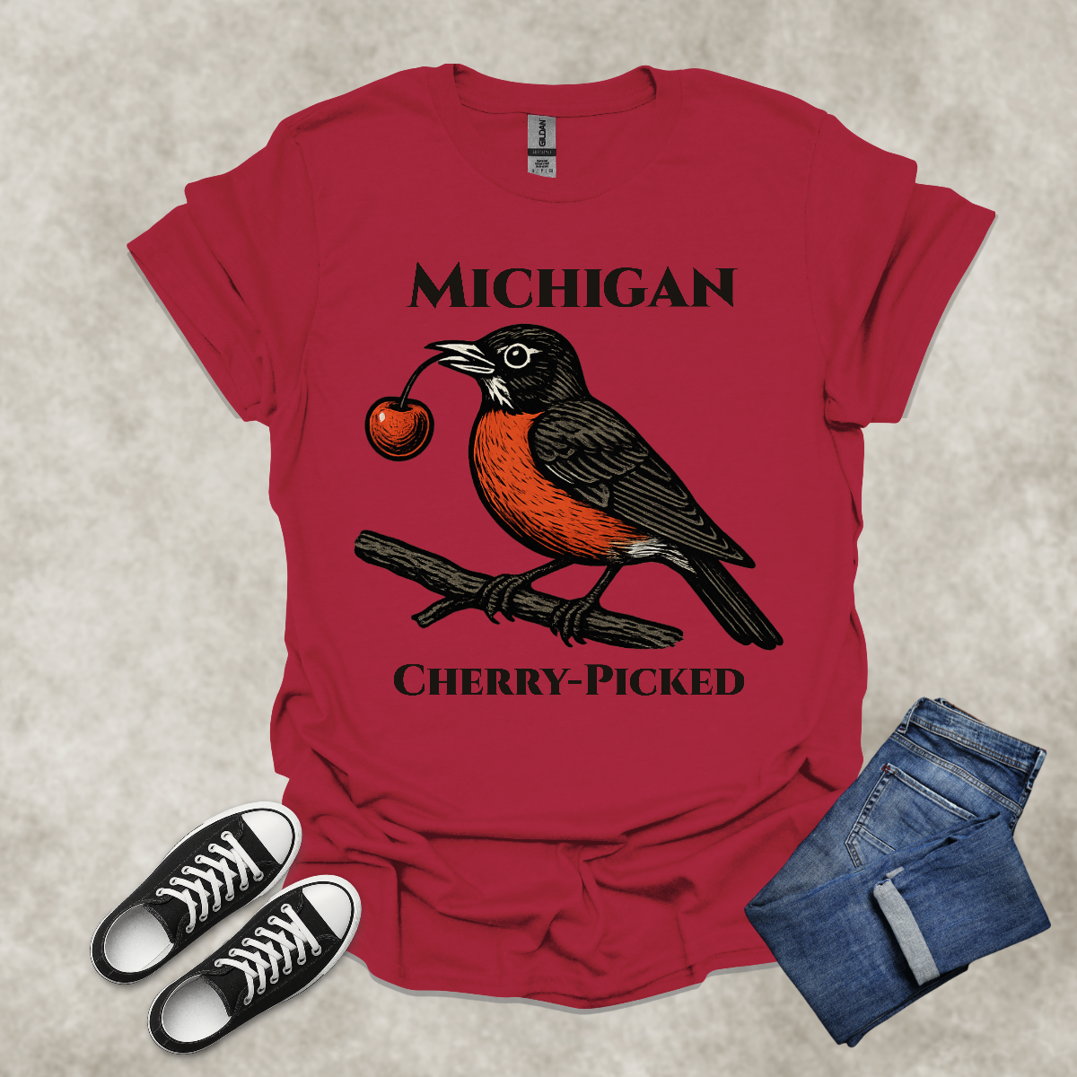 MICHIGAN: CHERRY-PICKED — State Pride Graphic Tee: Unisex Softstyle T-Shirt